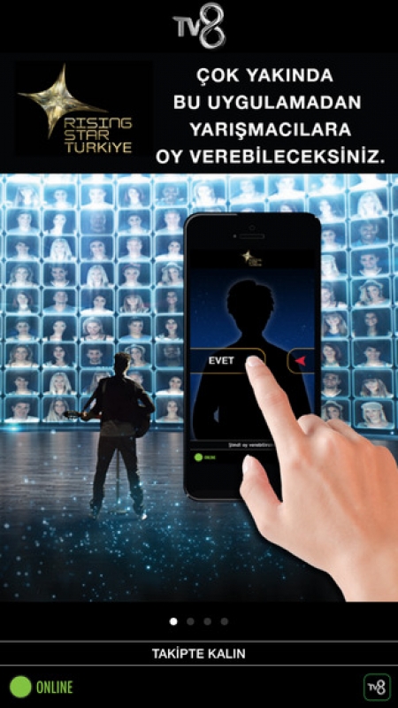 Aynı zamanda TV8 Yan Ekran uygulaması ile telefon ve tabletleriniz üzerinden ücretsiz olarak canlı programlara bağlanabilirsiniz, ve yine TV8 de yarışma programlarına aktif olarak katılabilirsiniz.